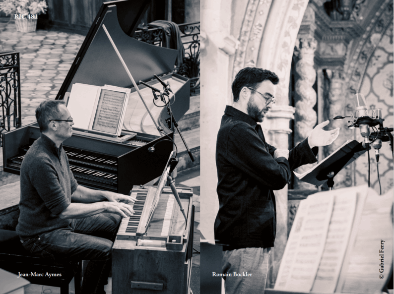 Keyboardist Jean-Marc Aymes and baritone Romain Bockler in recording session.